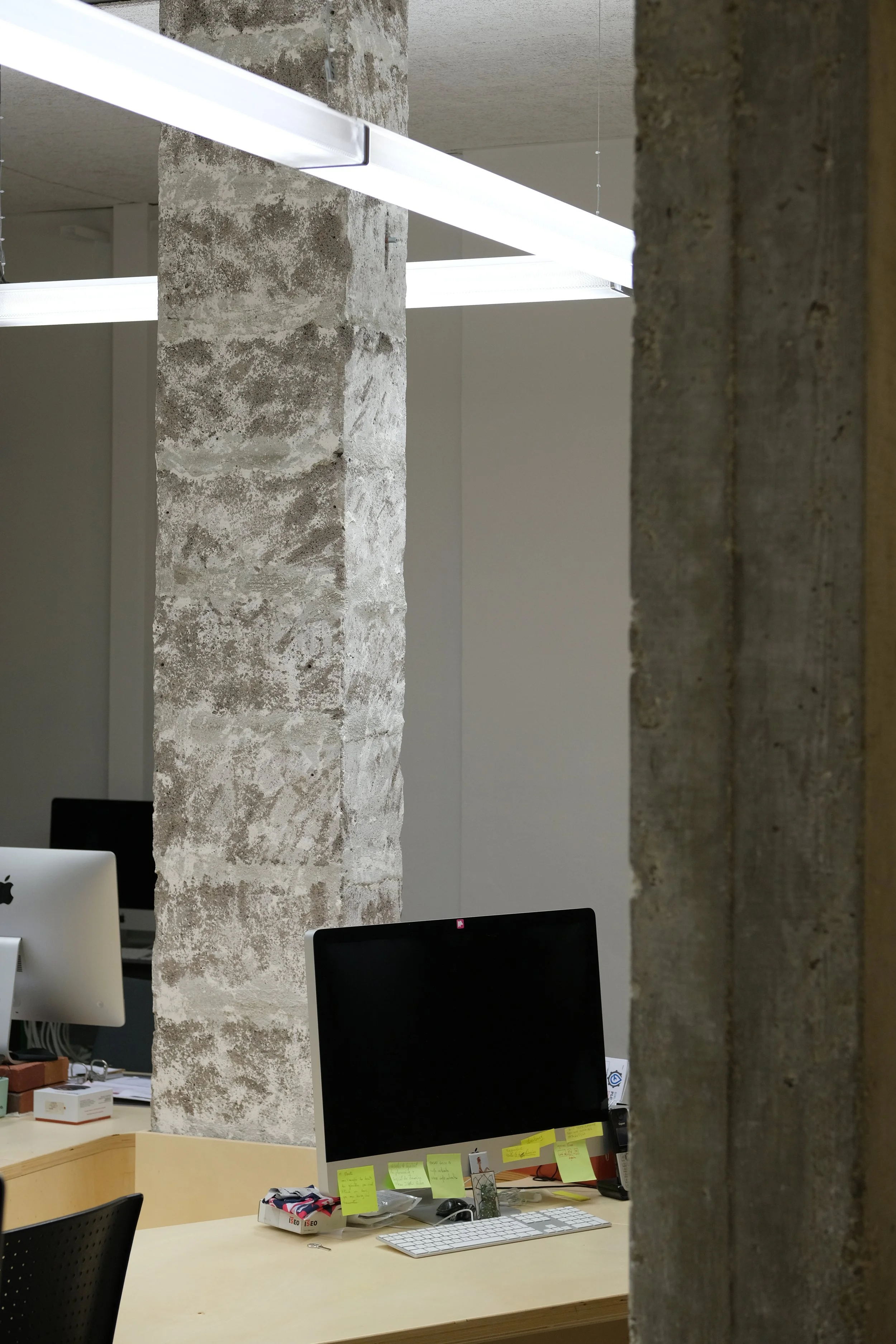 Transformation d’un ancien magasin d’appareil hifi en une agence d’architecture à Reims. L’agence Philippe Gibert Architecte a comme volonté de mettre à nue cet espace et de retrouver les matériaux brutes du lieu c’est-à-dire le béton et les briques de verres. L’espace donne sur une grande vitrine ce qui laisse pénétrer une belle luminosité et un contact direct avec l’extérieur.